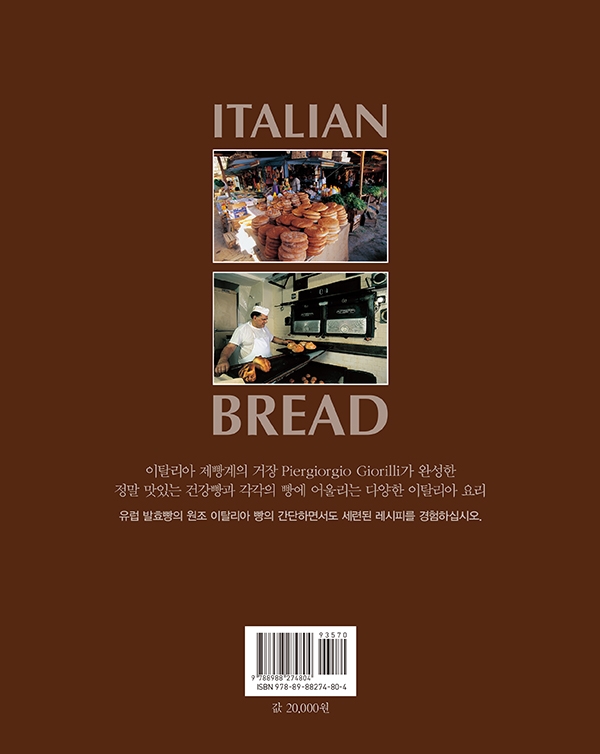 쉽고 자세한 용어 설명은 기본이고, 한국에서 이탈리아 빵맛을 그대로 재현하는데 부족함이 없도록 정보를 강화했습니다. 이탈리아 밀가루의 한국적인 변환, 한국에는 없는 재료의 대체 재료 제시, 구체적인 제조 과정 설명, 이탈리아 제빵법의 이해를 돕기 위한 팁을 제시했습니다. 정확한 정보를 위해 저자 삐에르조르죠 조릴리는 세 번이나 한국을 직접 방문, 제빵, 요리 자문을 아끼지 않았습니다. 이탈리아 빵 본연의 맛을 느낄 수 있도록 각별한 정성을 기울여 만든『이탈리아 빵』! 지금 만나보십시오.