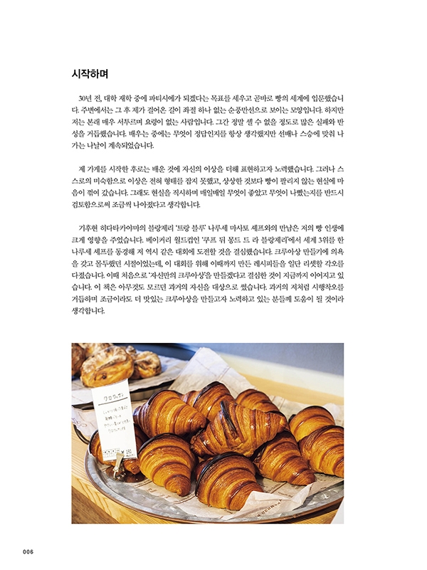 셰프는 책 곳곳에서 빵과 삶에 대해 품어 온 철학과 이야기들을 담은 칼럼을 통해, 기술을 넘어 크루아상을 대하는 태도와 마음가짐까지 깊이 있게 전달한다. 『크루아상의 세계』는 크루아상을 사랑하는 이들에게 확실한 길잡이가 되어 줄 것이다.
